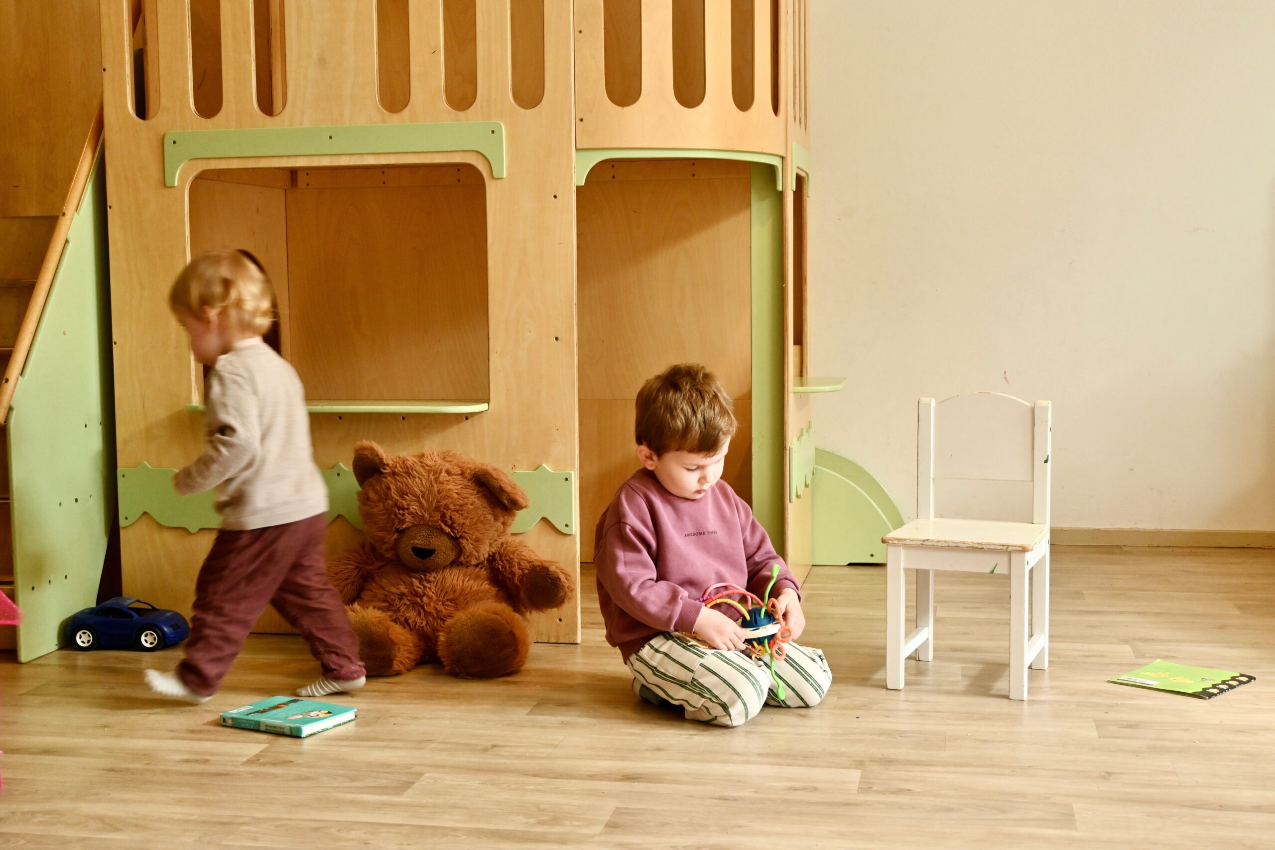 Er is volop speelgoed en genoeg tafels en stoelen tot je beschikking. Er kan zowel binnen als buiten gespeeld worden. Verder mag er gebruik gemaakt worden van de keuken.