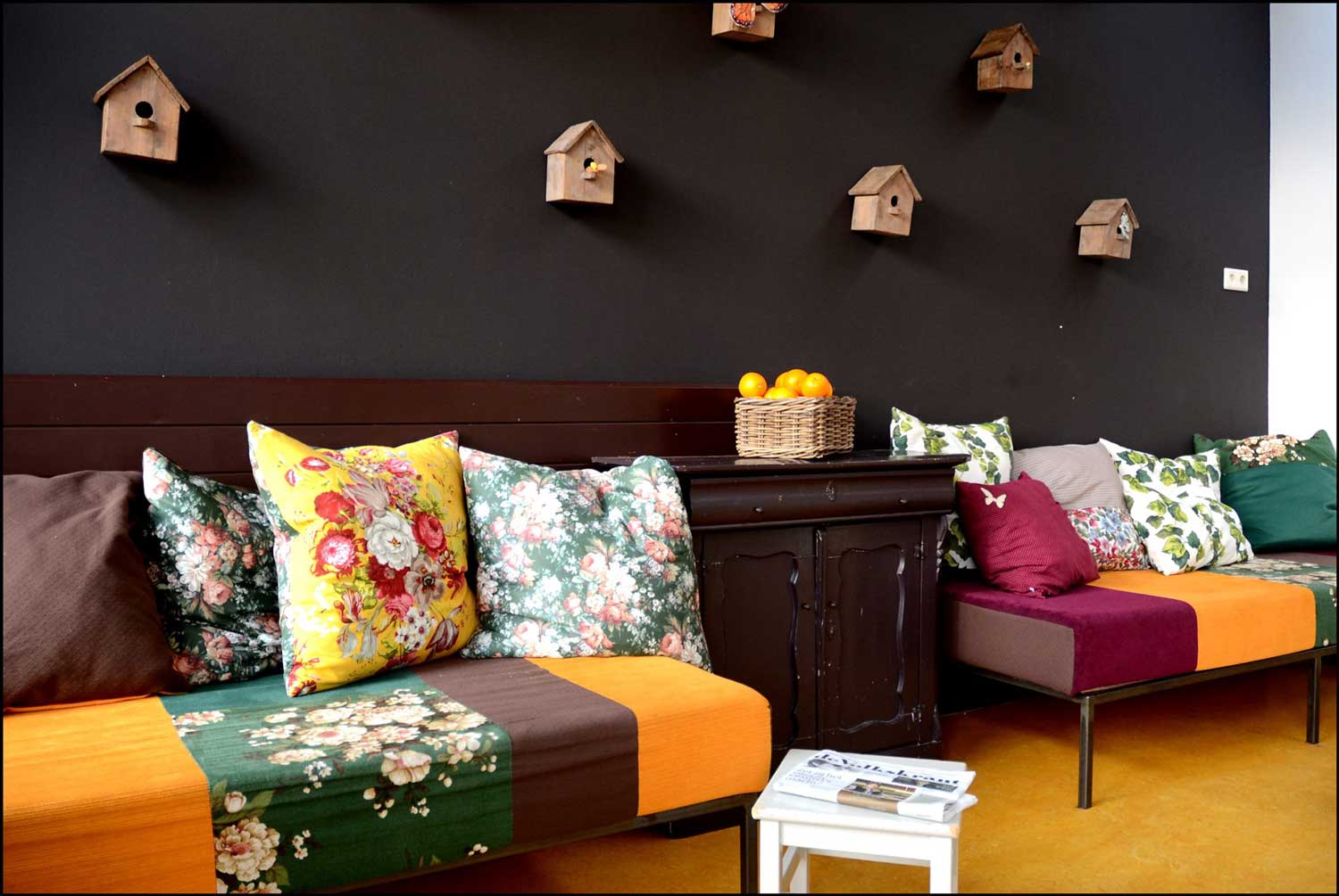 A lovely cushions corner where parents can sit down and read books with their children.